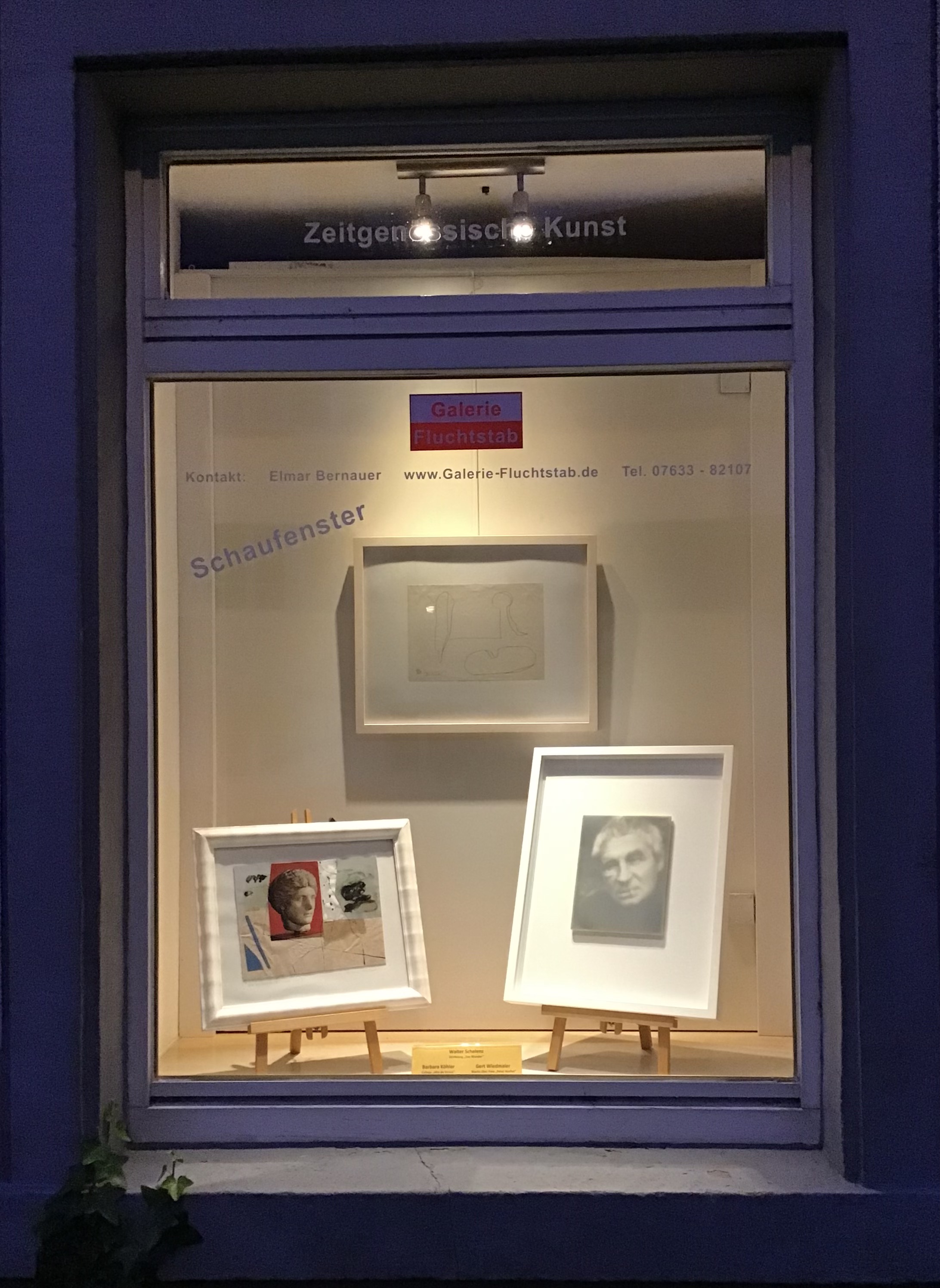 Schaufenster der Galerie Fluchtstab in der Kirchstraße 16 in Staufen neu eingerichtet. Beide Künstler